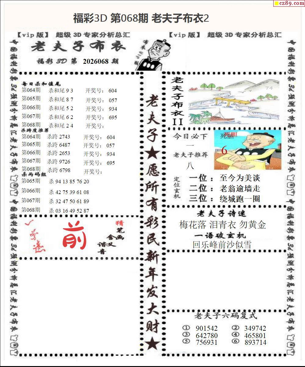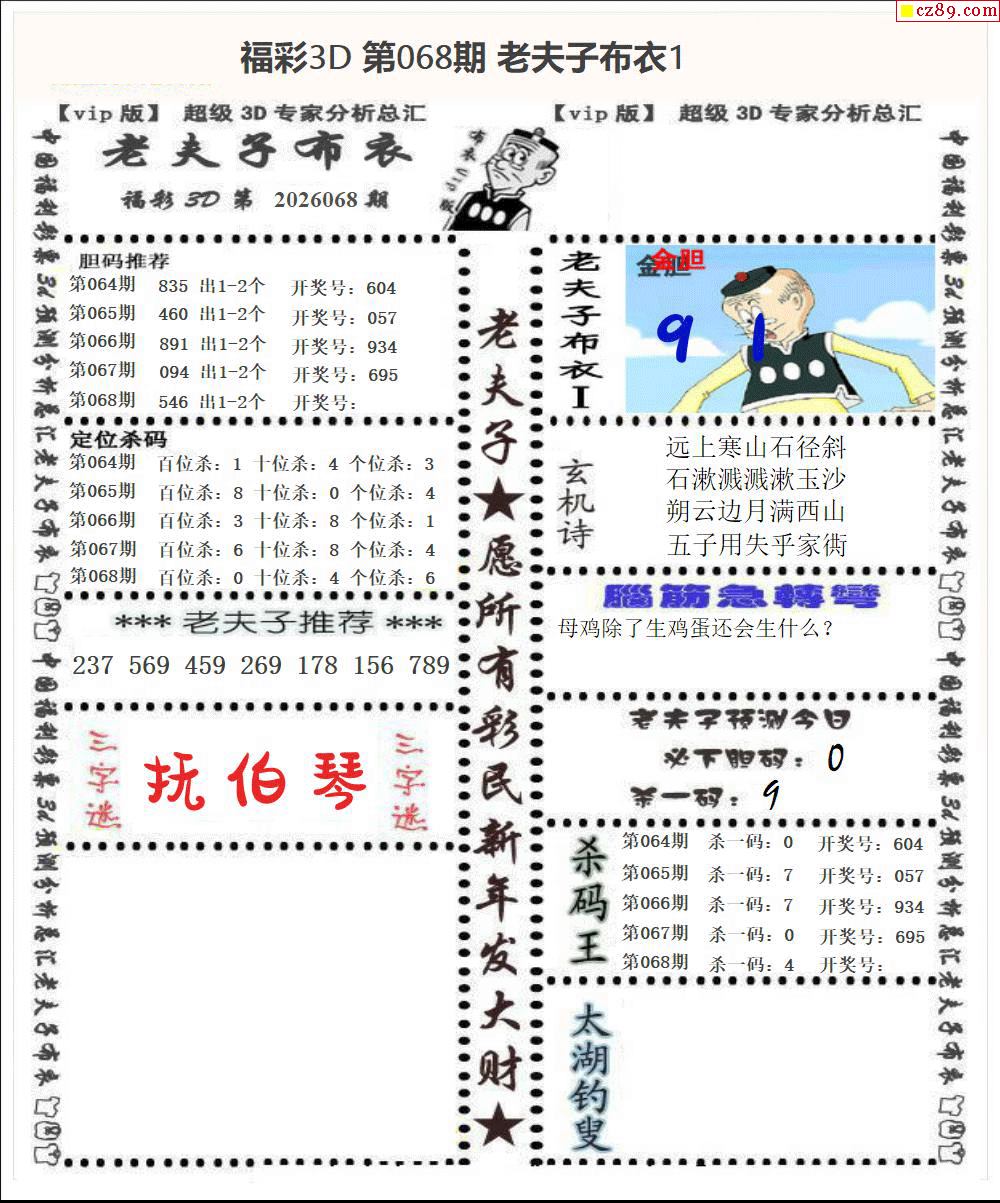 老夫子布衣2026068期3d图谜