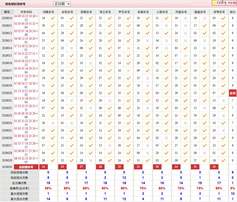 030期彩票专家双色球杀红蓝推荐汇总