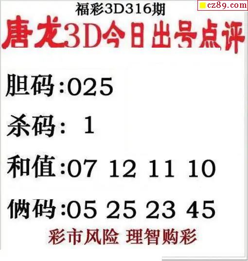 唐龙点评2025316期3d图谜