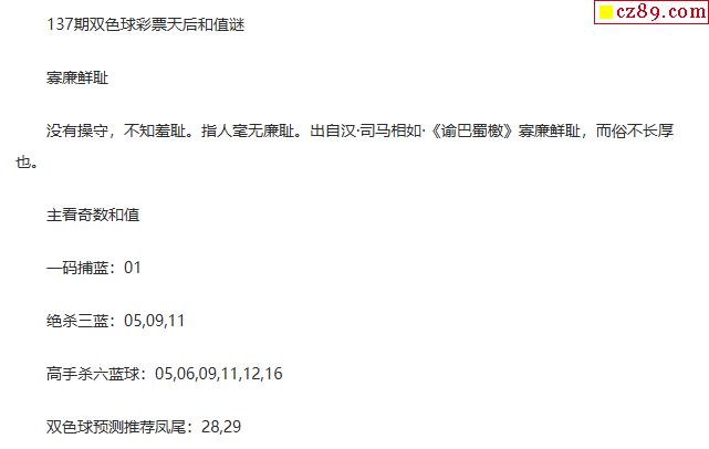 首页 > 双色球图谜 > 25年福彩双色球137期 彩票天后和值谜