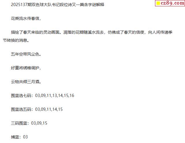 > 25年福彩双色球137期 大队书记段位诗另一篇